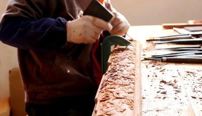 流程三雕刻工序 為了讓紅木家具看上去更美觀,在木工工序完成之后一般都會(huì)用一些或簡(jiǎn)單或復(fù)雜的雕花來(lái)進(jìn)行裝飾,也就是行業(yè)中所說(shuō)的雕刻紋飾。雕刻紋飾必須在“認(rèn)榫”完成后進(jìn)行,因?yàn)椤罢J(rèn)榫”時(shí)需要修整,如果先做好雕花再開(kāi)榫,紋理很難保證雕花部件都在同一平面上,而此時(shí)為了保證雕花...